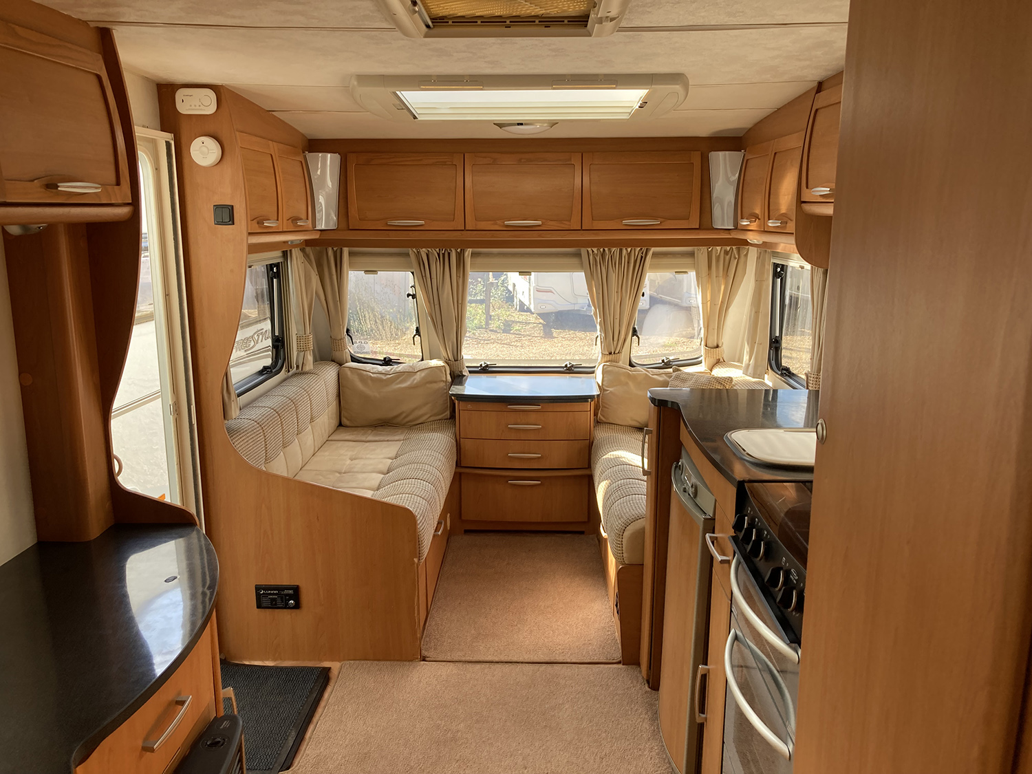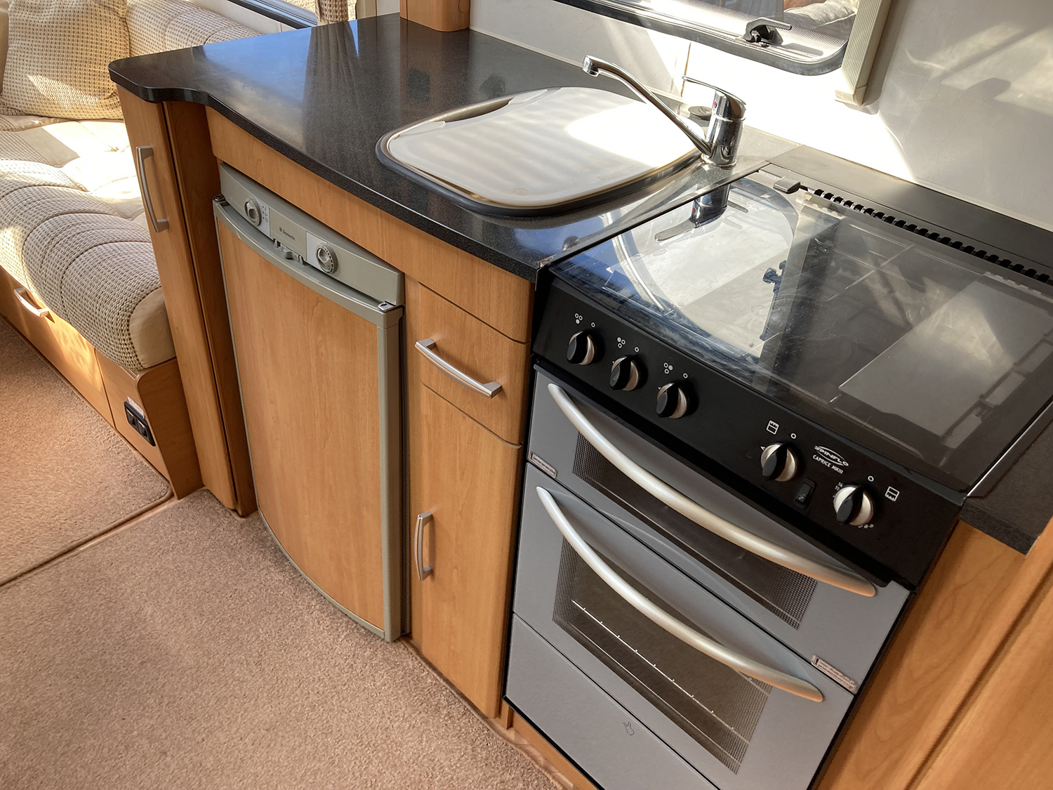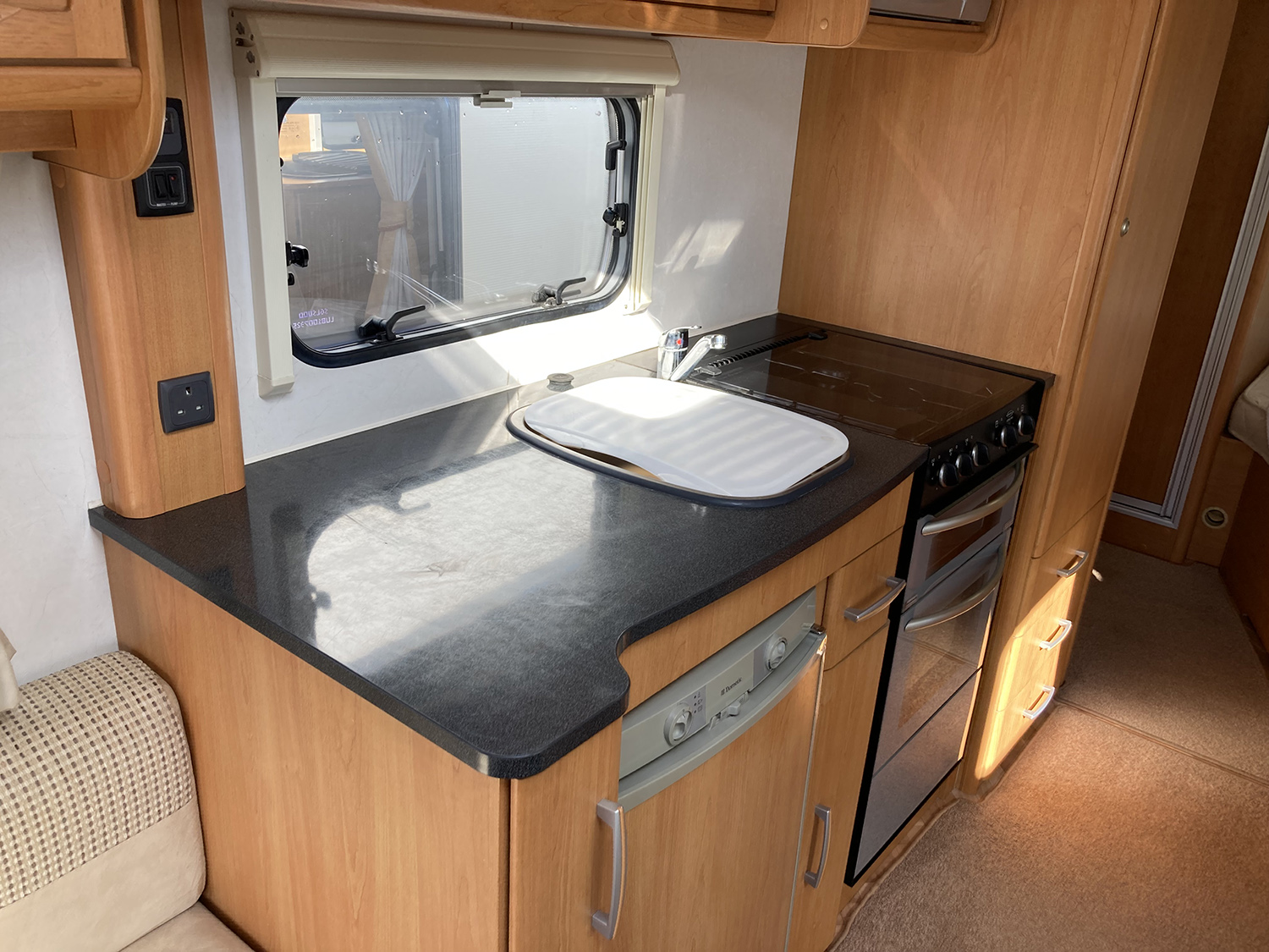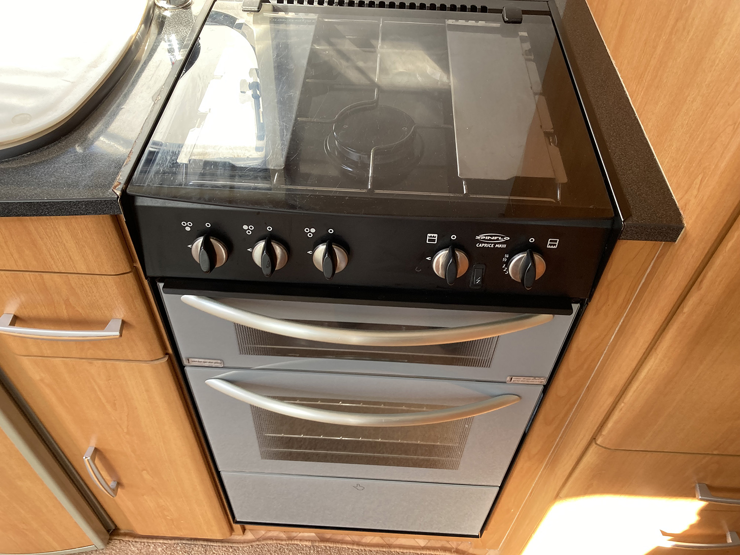 S/Axle, Fixed Bed, Side End Washroom, Shower, Sink, Electric Flush Cassette Toilet, Gas Hob, Grill, Oven, Fridge, Microwave, Extractor Fan, Truma Electric + Gas Heating & Hot Water, Mains Electric, Battery Charger, Directional TV Aerial, Remis-Rooflight, Loose Fit Carpets/Vinyl Flooring, Folding Table, Blinds, Fly Screens, Door Fly Screen, External 240v Socket & BBQ Point, Alloy Wheels, Spare Wheel, Hitch Stabiliser & Fully Auto Caravan Motor Mover.