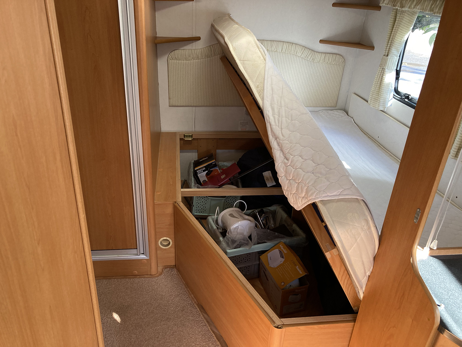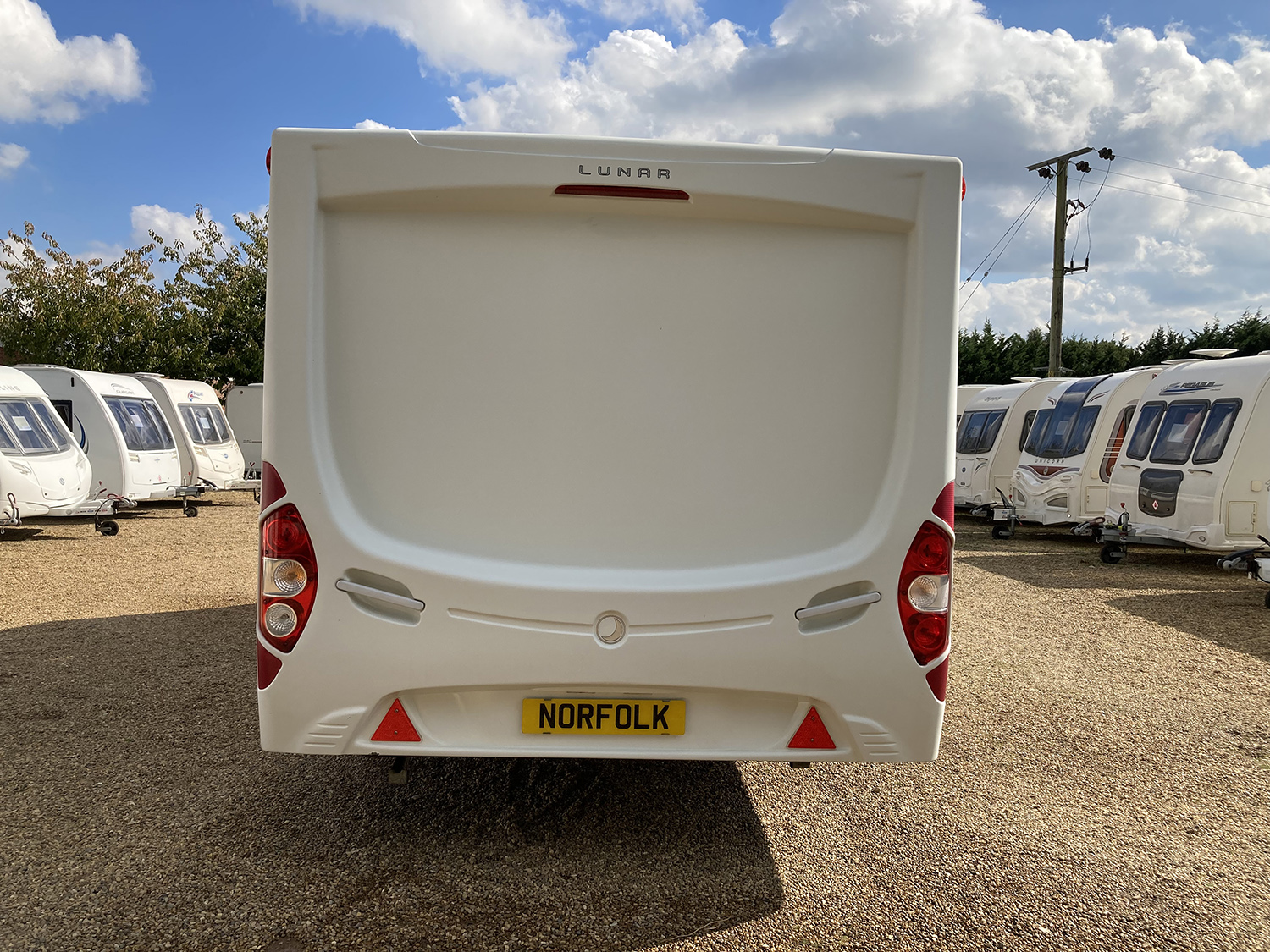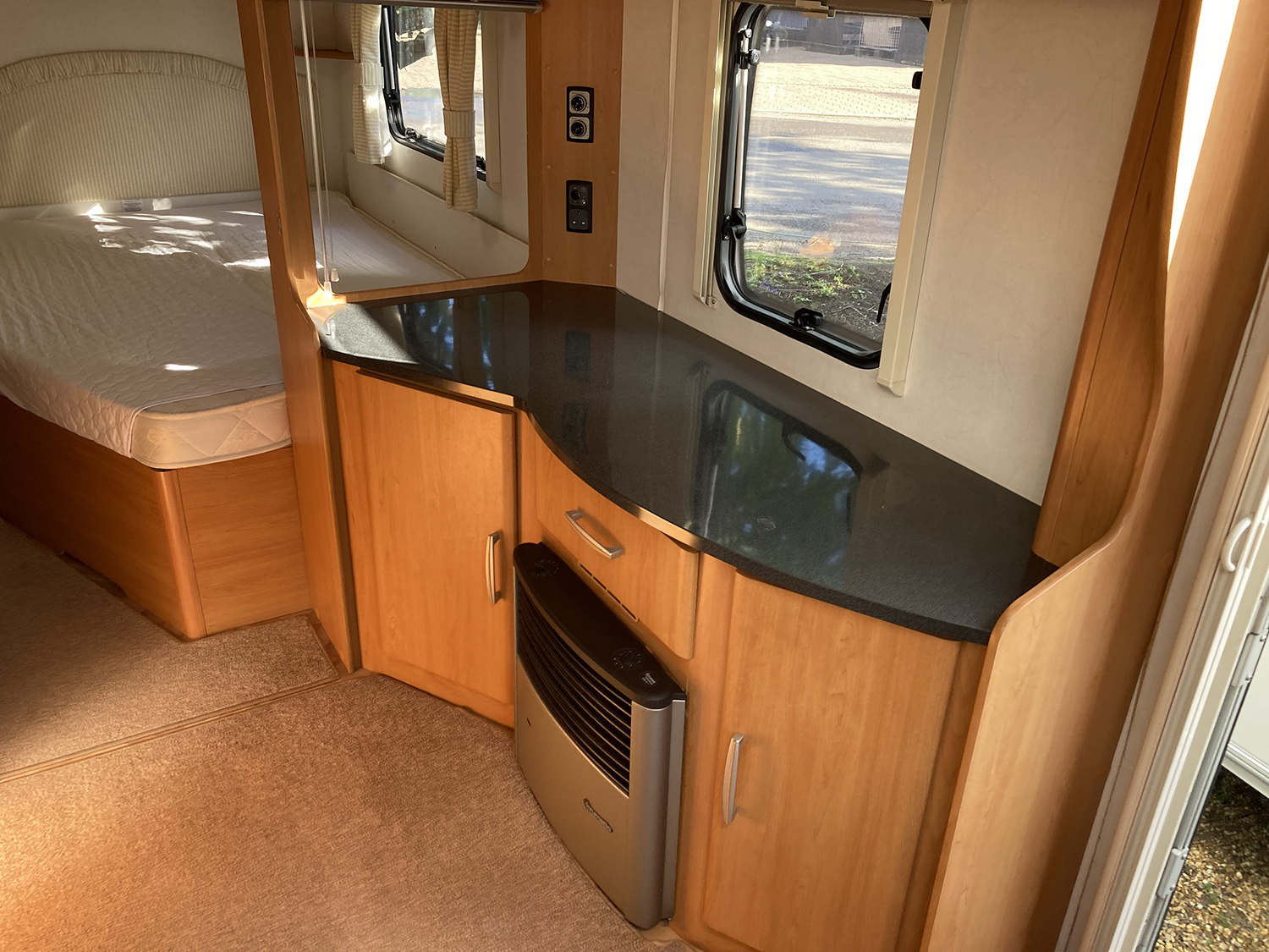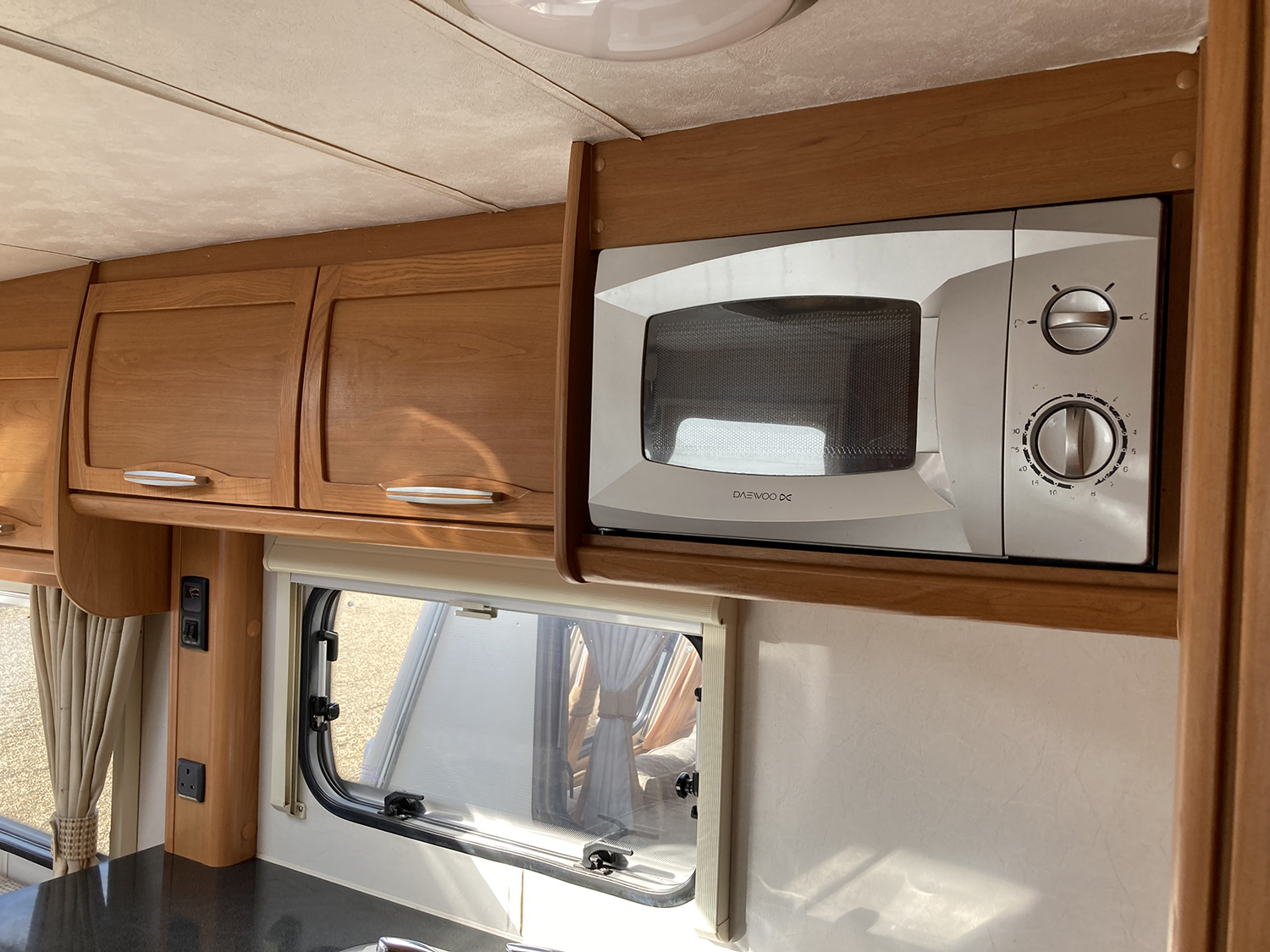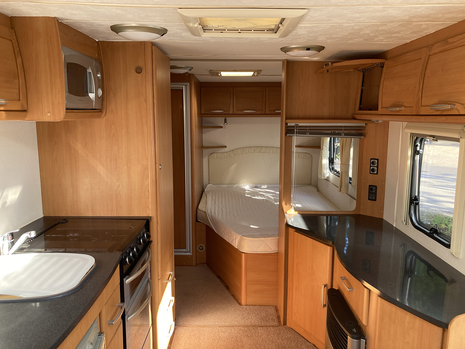 S/Axle, Fixed Bed, Side End Washroom, Shower, Sink, Electric Flush Cassette Toilet, Gas Hob, Grill, Oven, Fridge, Microwave, Extractor Fan, Truma Electric + Gas Heating & Hot Water, Mains Electric, Battery Charger, Directional TV Aerial, Remis-Rooflight, Loose Fit Carpets/Vinyl Flooring, Folding Table, Blinds, Fly Screens, Door Fly Screen, External 240v Socket & BBQ Point, Alloy Wheels, Spare Wheel, Hitch Stabiliser & Fully Auto Caravan Motor Mover.