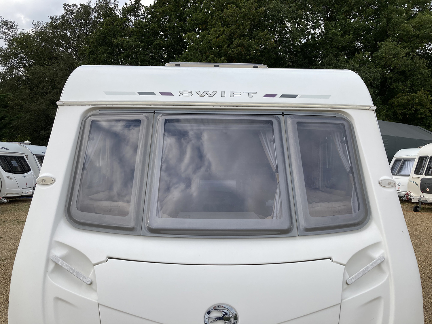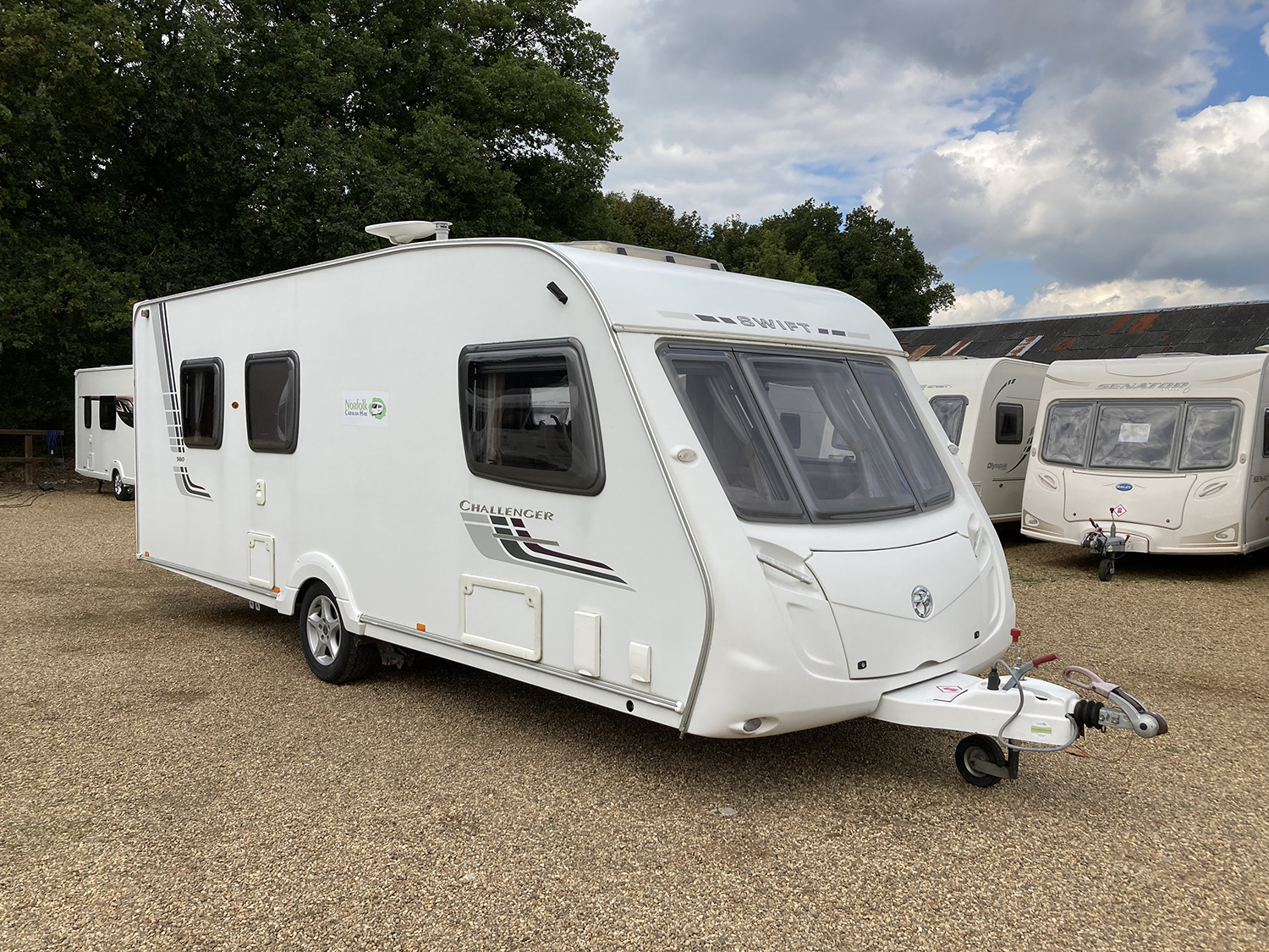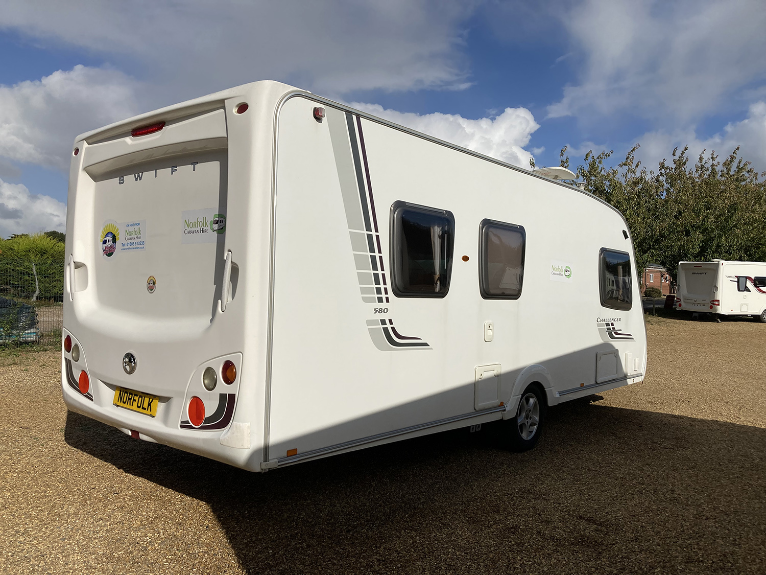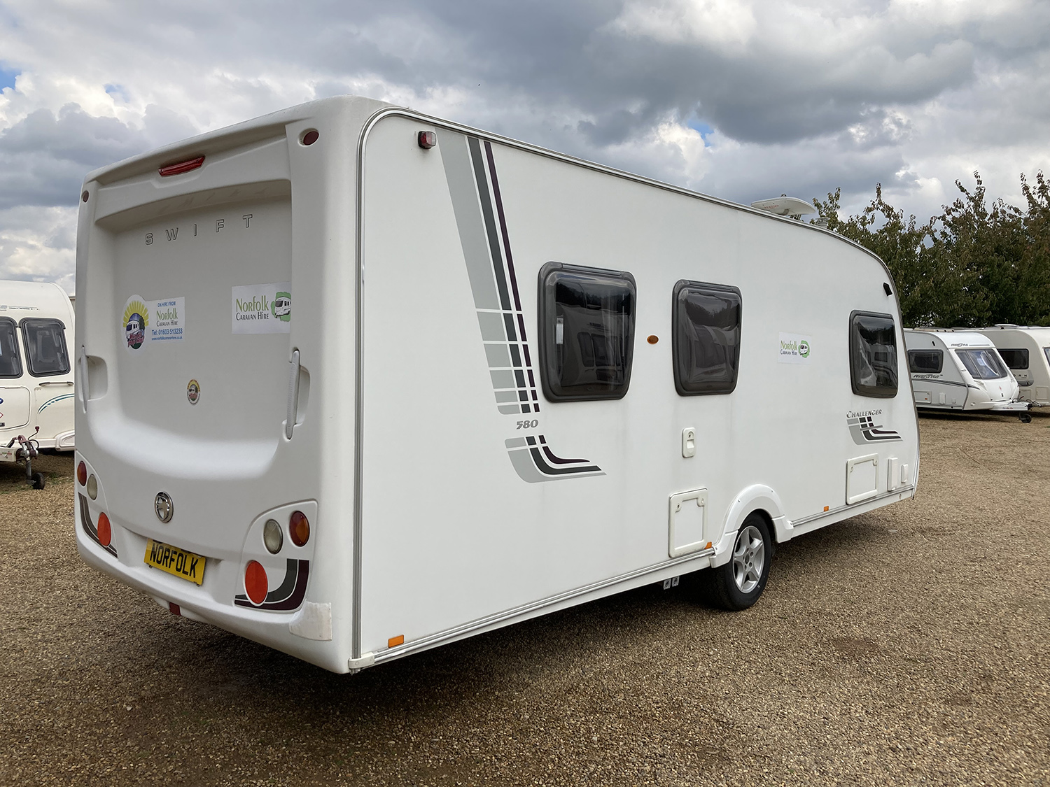 SOLD! A long-standing favourite, the Swift Challenger 580! It's popularity earned through a sought-after layout with a fixed island double bed and central washroom. Comes with a fitted solar panel and caravan motor mover. Plus, a full service before collection!