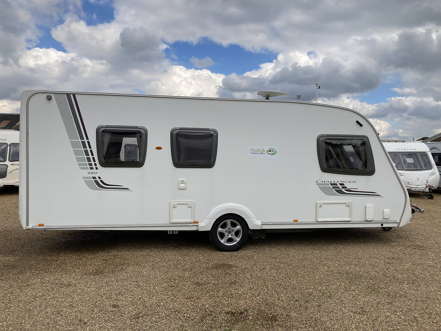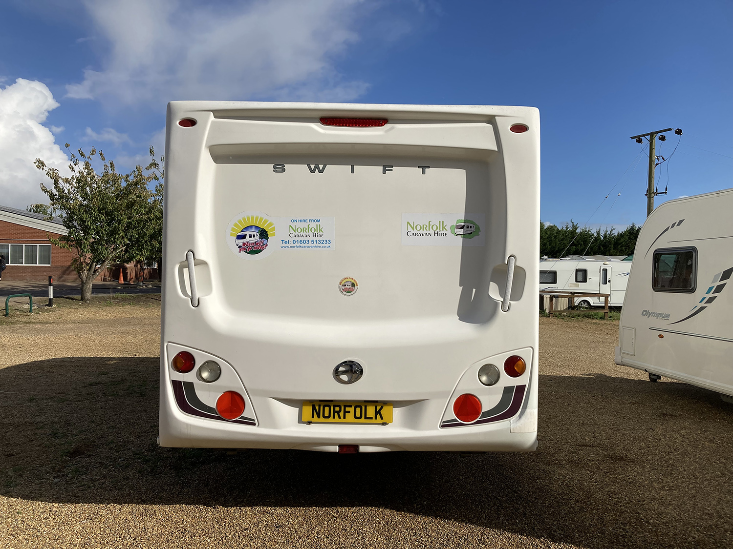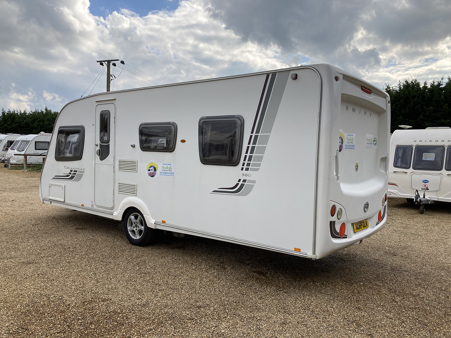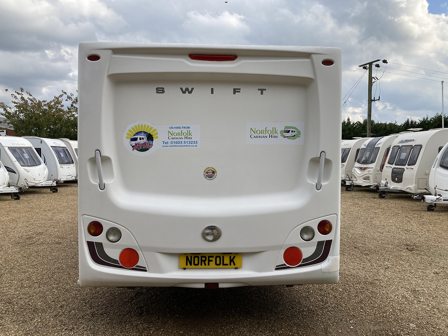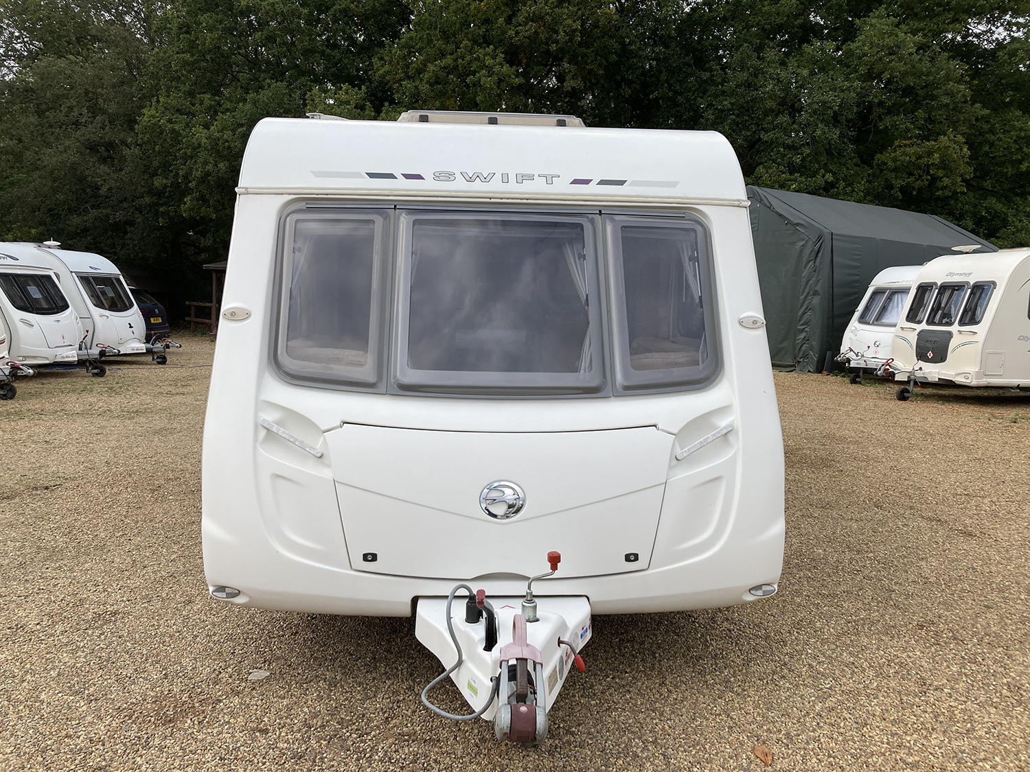 SOLD! A long-standing favourite, the Swift Challenger 580! It's popularity earned through a sought-after layout with a fixed island double bed and central washroom. Comes with a fitted solar panel and caravan motor mover. Plus, a full service before collection!